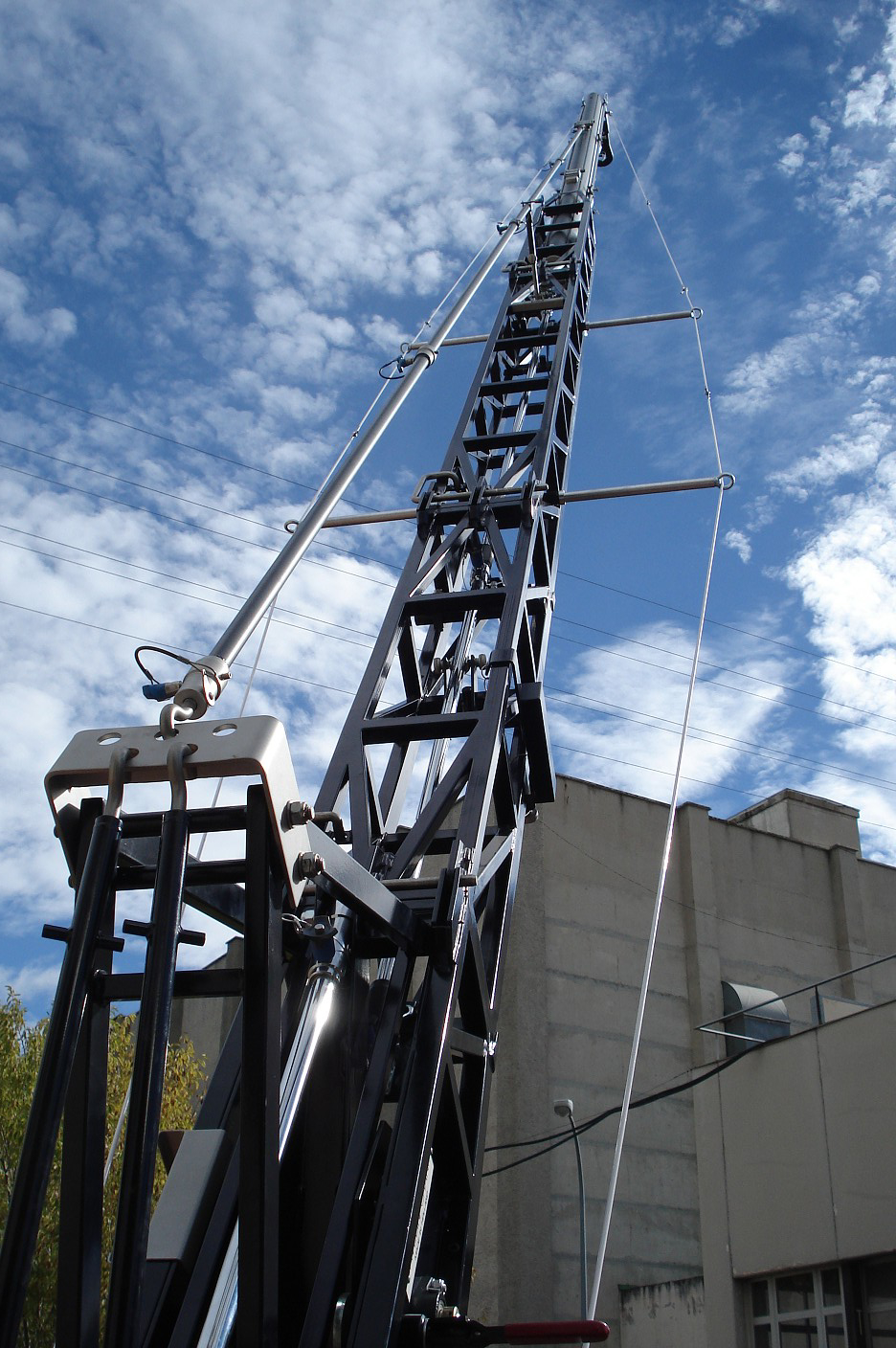 La grúa Scanner Elite está formada por una dolly de base estándar con dirección a las 4 ruedas y un brazo de una longitud extensible desde 4.6 hasta 6.4 metros de longitud, dándonos una altura en el soporte de la cabeza de 7.25 metros. Esta grúa tiene un tramo de brazo extensible de 1.8 metros, permitiéndonos adaptarnos a los escenarios sin necesidad de desmontar la cabeza caliente ni su cableado. Soporta 35kg en su máxima extensión y está diseñada para trabajar con cabeza caliente.