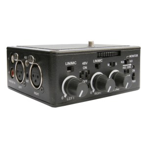 El modelo DXA/5Da es un adaptador pasivo XLR de audio para cámaras DSLR con mini jack. No necesita alimentación para transmitir la señal de audio. Es un modelo ideal para micrófonos inalámbricos y micrófonos autoalimentados o como interface de una mesa de mezcla. Al igual que el otro modelo, se acopla a la base de la cámara y a la vez éste se puede montar en un plato de cámara. Su carcasa es de policarbonato resistente y tiene función AGC de ganancia, volumen de auriculares, selector salida mono/estéreo, selectores línea/micrófono, balance de canales, dos entradas XLR balanceadas, entrada auxiliar mini jack para micrófonos inalámbricos, salida mini jack a cámara, ajustes de ganancia HI/LO, selector de tierra para eliminar ruido y pantalla LCD. Funciona con una pila de 9V.