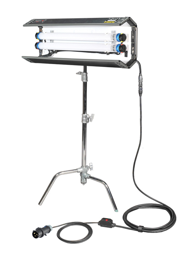 Esta pantalla de 4 tubos lleva la carcasa reflectora de plástico ligero plegable y desmontable para dejar los tubos libres, el eggcrate, el cable de alimentación con el interruptor de paso con dimmer integrado, el plato con rótula para montarlo en las rótulas ceferino. El de 20W pesa 4,35kg y proyecta 1100 Lux a 1 metro mientras que el de 40W pesa 6,25kg y emite 1900 Lux a 1 metro.