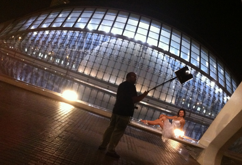 El ayudante de Balabasov utilizando un softlight portátil de Dedolight
