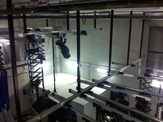 Por otro lado están los sets virtuales que acostumbran a estar dotado de un ciclorama 3D, de dos o tres lados más suelo, y pintado en chroma key verde o azul. Aquí la tela esta prohibida y se pueden realizar de obra, de madera, de pladur o de fibra; nosotros nos hemos especializado en realizar los de pladur y fibra para nuestras instalaciones, pués creemos que son los que nos dan mejor resultado. El ciclorama de pladur es laborioso pero queda perfecto, y si tenemos prisa el prefabricado de fibra, aunque es más caro.