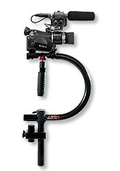 Panasonic AF101: La Panasonic AF101 es de óptica intercambiable con sensor de 4/3” y está llamada a competir con la Canon DSLR 1DS en cuestión de inversión económica. Cada cual que escoja la cámara que más le convenga después de calibrar ventajas e inconvenientes de cada una. También la equipamos con el nuevo soporte a hombro para cámaras vídeo (GVSMK) y variaremos los otros accesorios dependiendo si vamos a trabajar con ópticas fotográficas (digamos DSLR) u ópticas de cine con montura PL.