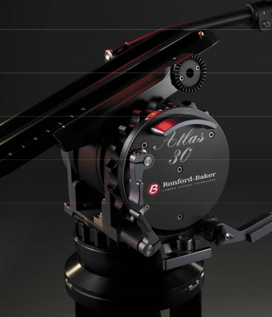 Como lo más popular de Ronford-Baker hoy en día son sus cabezas fluidas, empezaremos en este post hablando de la más grande, la Atlas, con una capacidad de 50kg y un peso de 13kg; incorpora un sistema patentado de balance y 15 durezas de fricción fluida en picado y panorámico, aparte del punto muerto o cero que deja la cabeza totalmente libre. El movimiento de picado alcanza los 180º y podéis escoger, para la fijación al trípode, entre el sistema Mitchell o la bola de 150mm, aunque siendo una cabeza destinada a grandes cámaras de cine yo siempre optaría por la montura Mitchell y nivelar por patas o peanas; imaginaros nivelar la cabeza con 50kg de cámara más 13kg de la propia cabeza con un anclaje de bola.