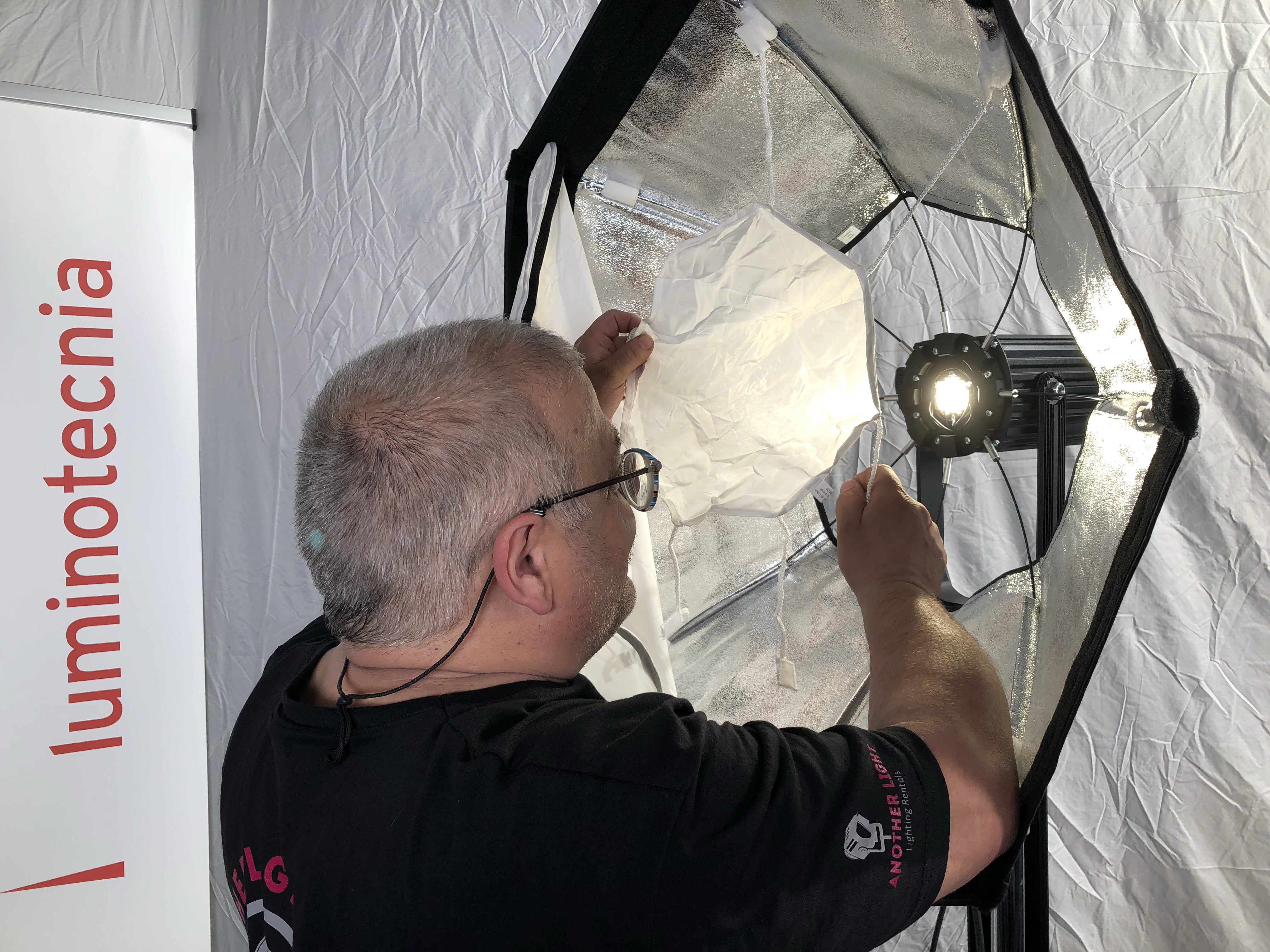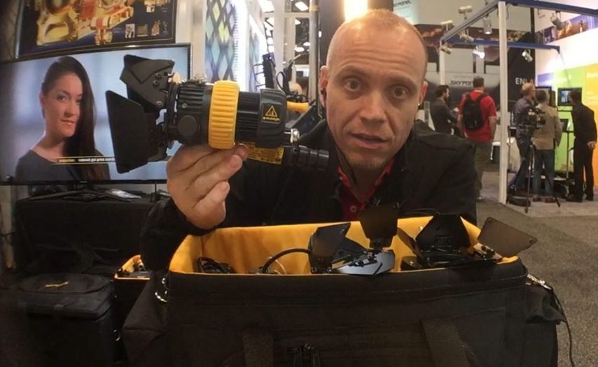 - LiteGear – NOVEDAD NAB: El fabricante americano presentó las tiras LED LiteRibbon Chroma de 4 colores en un chip, RBGW. También presentó el panel ultraligero LiteMat Plus 8′ para completar la familia. Estuvieron todos los LiteMat Spectrum, los ultraligeros de color, que ya presentaron en la NAB el pasado mes de abril; la verdad es que jugar con ellos fue un placer con su control tan completo e intuitivo. También pudimos ver el Mirage, para convertir pantallas Kinoflo Image85, Wallolite y Flathead 80 en pantalla LED, con bicolor + chroma verde + chroma azul; sin necesidad de desmontar nada. Se monta con 4 tornillos y si el cliente te pide las pantallas con tubos desmontas la placa LED con 4 tornillos y a trabajar. *Todavía no tenemos fechas de entrega de estos productos.