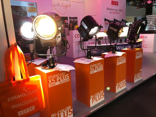 - FilmGear: Volvió a la IBC por la puerta grande presentando la nueva línea LedSpot de fresnels bicolor de 90W, 150W y 300W y también el fresnel de 500W en luz día o tungsteno; además presentó los Spacelight Color RGBW de 720W y los kits de antorchas Mini Panel de 8W y 16W. Dejó para más adelante la presentación de los tubos LED RGBWA de 310º y con batería integrada… Para más información de los productos FilmGear podéis consultar los catálogos en nuestra página