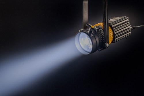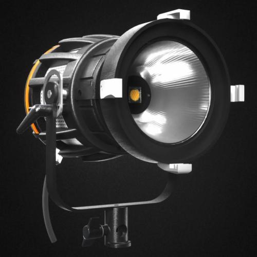 El foco: Puestos a hacer un proyector focalizable y viendo que los nuevos proyectores son cada vez más inteligentes, ha apostado por prescindir del cambio de ángulo del haz mecánico. Los proyectores Fresnel Kosmos están constituidos por un robusto y muy compacto bloque electro-mecánico que se desplaza mediante un servomotor steeper de alta precisión, dentro de la cubierta externa compuesta por una única pieza de aluminio extraída de molde. El bloque interno alberga el COB (chip on board) cerámico con su sistema óptico, el sistema de refrigeración, el circuito de drivers de los LEDs, el circuito de alimentación AC-DC y el ventilador ultrasilencioso. Todo este bloque interno está protegido por tapas de aluminio especialmente diseñadas para desplazarse longitudinalmente sobre dos robustas guías lineales. Esto permite al operador/a cambiar el haz desde la consola o la app Velvet Goya sin tener que acceder al proyector cuando éste ya esté colgado. Sí, ya sé, cuantas más opciones creativas, más incertidumbre a la hora de decidir, pero ya puestos a definir el dimmer, el tono o color y su saturación, porqué no tener opción de crear una luz más dura o más envolvente desde la consola; o porqué no en una escena dramática poder ir variando la luz a más dura sin tener que cortar la toma. Todo son herramientas para facilitar el trabajo al iluminador/a y dar alas al Director/a de Fotografía (aunque las dos cosas juntas parezcan incompatibles). Tranquil@s, también se puede variar el foco localmente desde su display de control intuitivo. Y claro está, los límites del haz pueden ser memorizables y programables tanto en local como en remoto. Con visualización en pantalla táctil TFT full color del parámetro numérico del ángulo del haz.