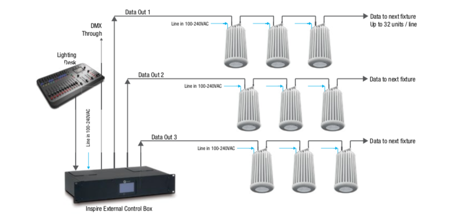 Hablando de refrigeración, y ese ruido que tanto molesta al sonidista, el Kosmos tiene 3 niveles de refrigeración, todos ellos pensados para proteger al máximo el COB de LEDs, que se pueden seleccionar en modo local o remoto. En cualquier modo seleccionado, el procesador electrónico, según los datos recabados por sus 3 sensores de temperatura (COB, driver, CPU), siempre protegerá la integridad del LED y de la electrónica.